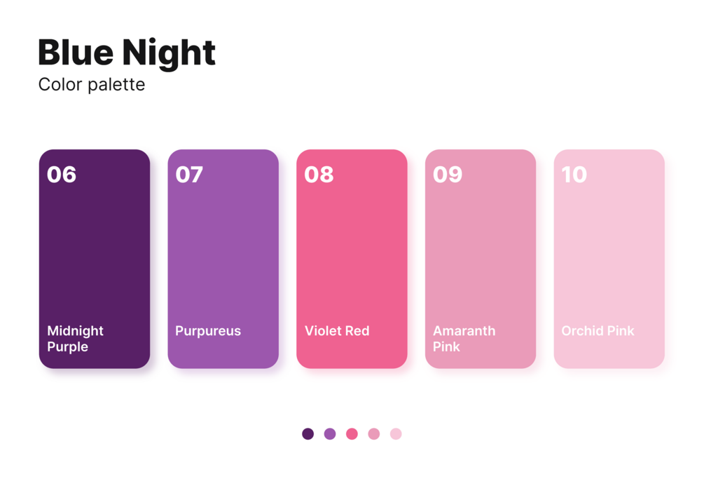 This color palette reminds the calm of the night and the dynamism of the city lights. This palette is ideal for creating delicate and monochrome illustrations.